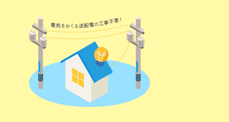 新電力へ変更の工事は不要!いつもの送電網で届けます!送配電は今までと変わらず地域電力会社が行うため、電気の品質は変わらずこれまでと同じだから安心です。また、新電力会社側に何かあっても、地域電力会社が代わりに供給するので安心です。